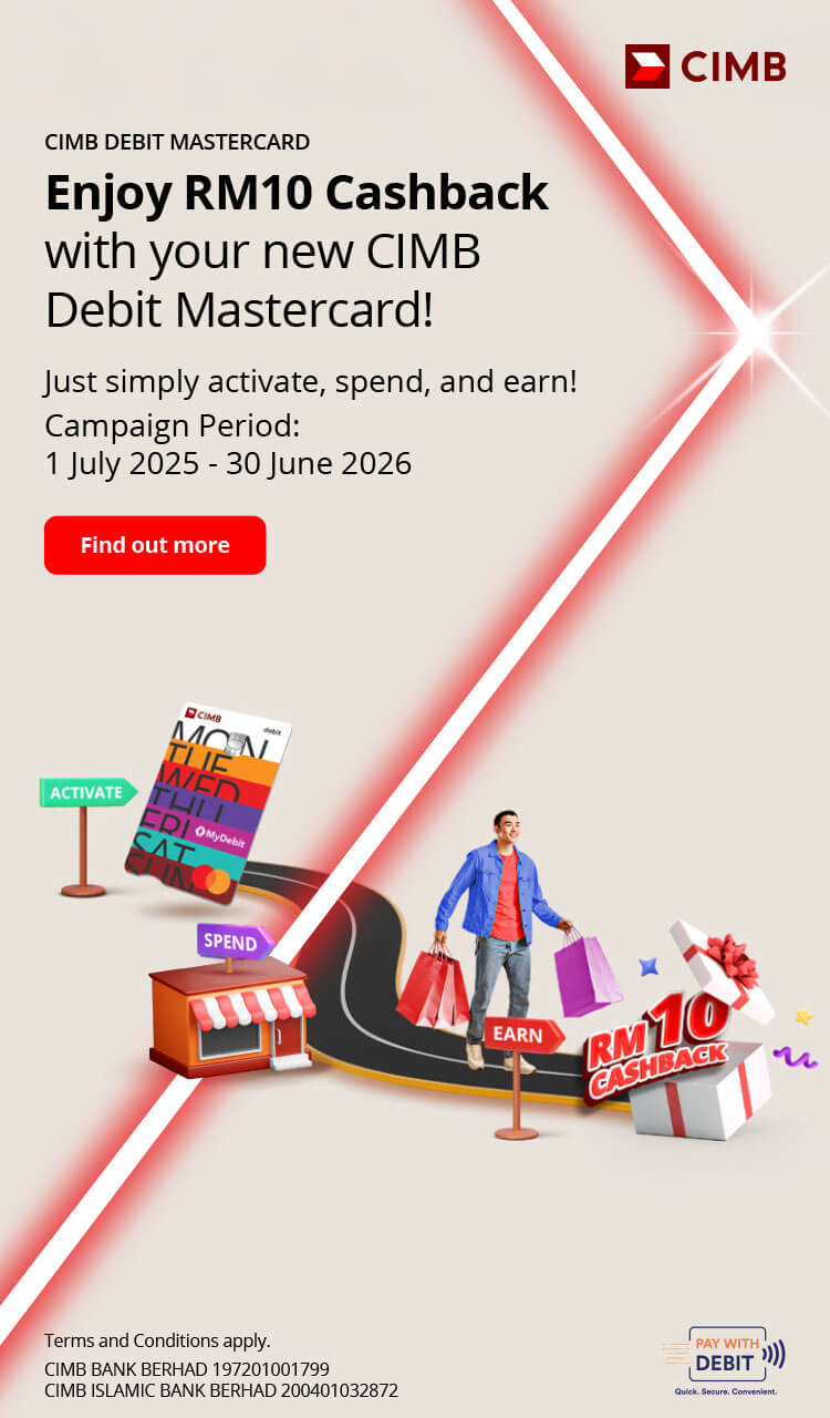 Whether it’s a candy bar or a shopping spree, no purchase is too big or small for your debit card. Buying things with this debit card is easy with a tap (for transactions less than RM250), and it also doubles as your ATM card to withdraw cash across the globe.